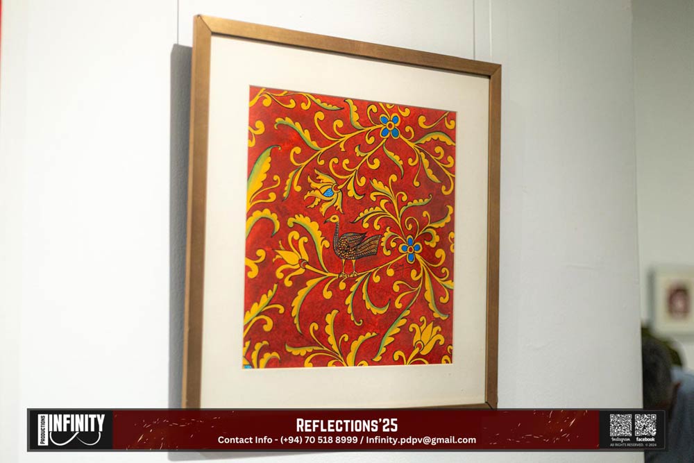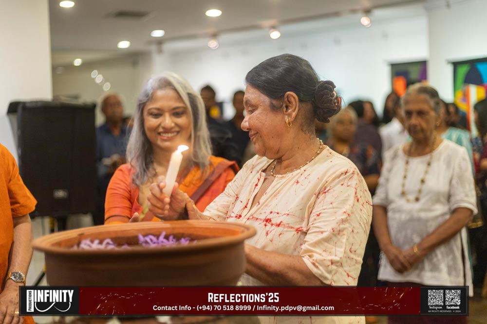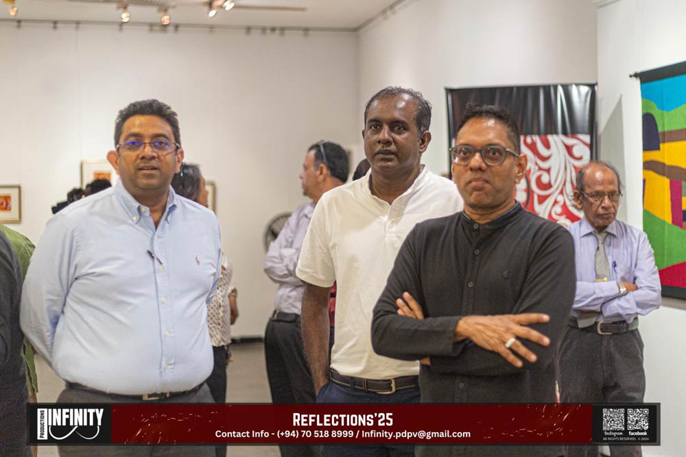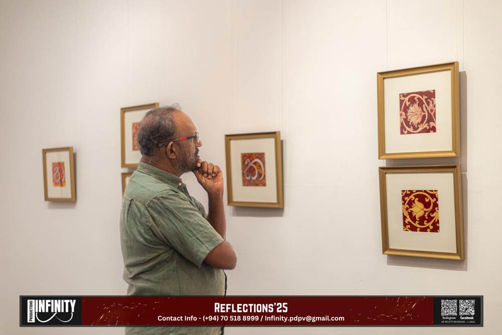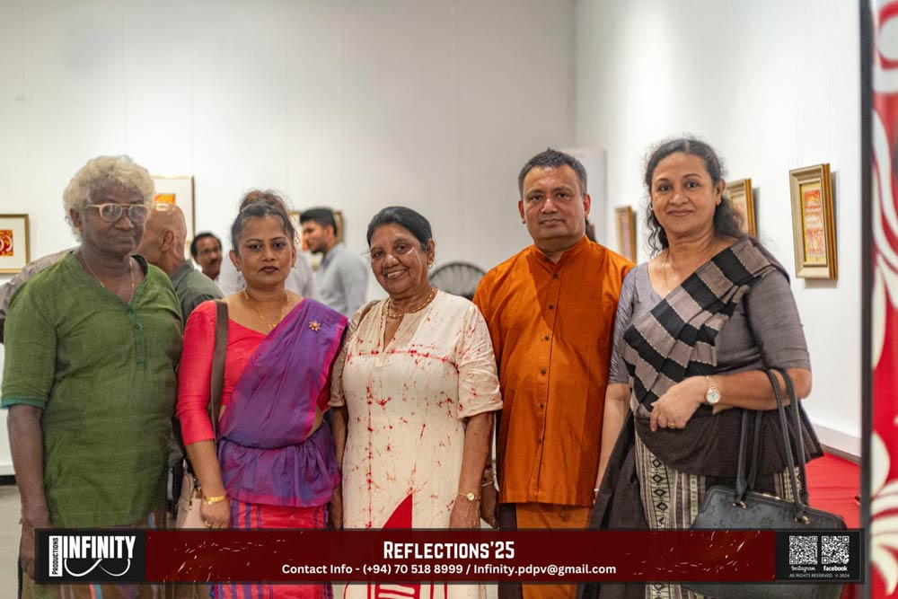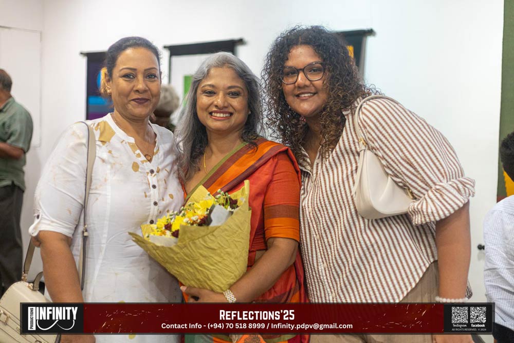 Reflections කියන්නෙ කොළඹ ලයනල් වෙන්ඩ්ට් කලාගාරයේ පැවති වෙනස්ම විදිහෙ චිත්ර සහ මෝස්තර ප්රදර්ශනයක්. සාලිංග ගුණසේකර සහ සරෝජා ධර්මදාස එකමුතුවෙන් පැවැත් වු මේ චිත්ර සහ මෝස්තර ප්රදර්ශනය වෙනුවෙන්ම එංගලන්තයේ ජීවත්වෙන සාලිංග ලංකාවට ආවා..දුම්බර පැදුරු රටා සහ වර්ණ ගැන ලංකාවෙ ඉන්න කාලයේ දිගු කාලීන අධ්යනයන්හි නියුතු වූ සාලිංග කියන්නෙ කොළඹ ආනන්ද විද්යාලයෙ චිත්ර විෂය සම්බන්ධයෙන් වැඩිම ජයග්රහණ ලැබූ ශිෂ්යා ලෙස මෙතෙක් නොබිඳී වාර්තාවක් තමන් සතු කරගත් දීප්තිමත් මෝස්තර සහ චිත්ර නිර්මාණ ශිල්පියෙක්.කොළඹ සෞන්දර්ය විශ්ව විද්යාලයෙන් නිර්මාණකරණයේ අක්ෂර සොයා ගිය සාලිංග සහ සරෝජාගෙ මිත්රත්වය තුළ මින් පෙරත් ඔවුන් එක්ව ප්රදර්ශන ගණනාවක් පැවැත් වුවා........
