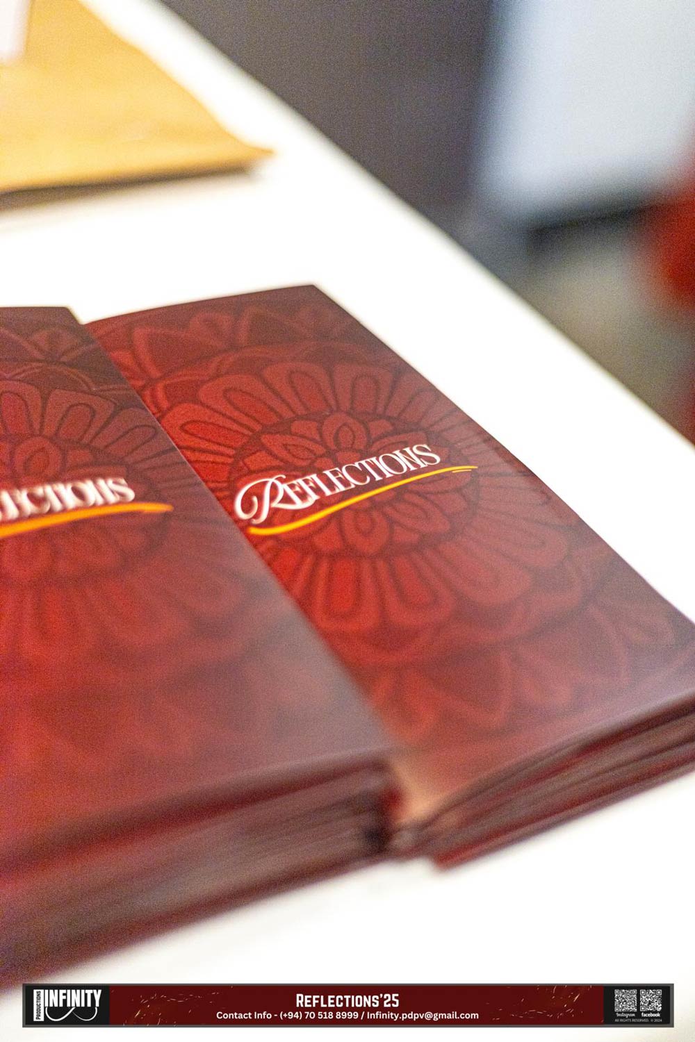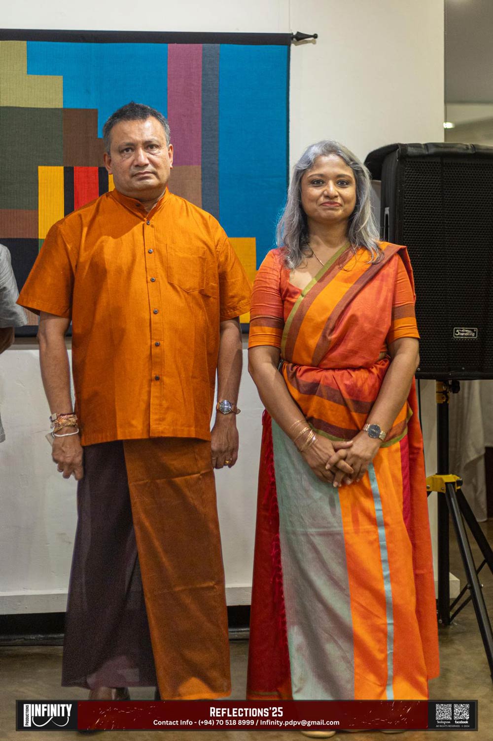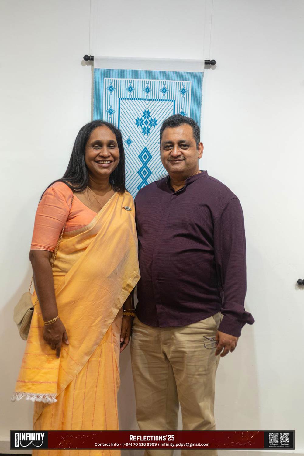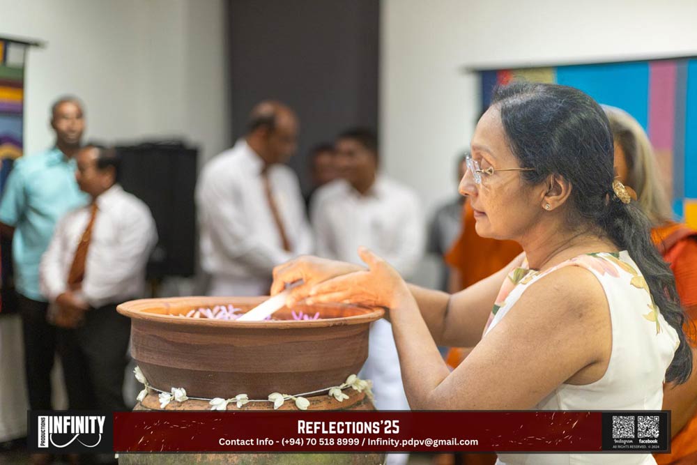 Reflections කියන්නෙ කොළඹ ලයනල් වෙන්ඩ්ට් කලාගාරයේ පැවති වෙනස්ම විදිහෙ චිත්ර සහ මෝස්තර ප්රදර්ශනයක්. සාලිංග ගුණසේකර සහ සරෝජා ධර්මදාස එකමුතුවෙන් පැවැත් වු මේ චිත්ර සහ මෝස්තර ප්රදර්ශනය වෙනුවෙන්ම එංගලන්තයේ ජීවත්වෙන සාලිංග ලංකාවට ආවා..දුම්බර පැදුරු රටා සහ වර්ණ ගැන ලංකාවෙ ඉන්න කාලයේ දිගු කාලීන අධ්යනයන්හි නියුතු වූ සාලිංග කියන්නෙ කොළඹ ආනන්ද විද්යාලයෙ චිත්ර විෂය සම්බන්ධයෙන් වැඩිම ජයග්රහණ ලැබූ ශිෂ්යා ලෙස මෙතෙක් නොබිඳී වාර්තාවක් තමන් සතු කරගත් දීප්තිමත් මෝස්තර සහ චිත්ර නිර්මාණ ශිල්පියෙක්.කොළඹ සෞන්දර්ය විශ්ව විද්යාලයෙන් නිර්මාණකරණයේ අක්ෂර සොයා ගිය සාලිංග සහ සරෝජාගෙ මිත්රත්වය තුළ මින් පෙරත් ඔවුන් එක්ව ප්රදර්ශන ගණනාවක් පැවැත් වුවා........