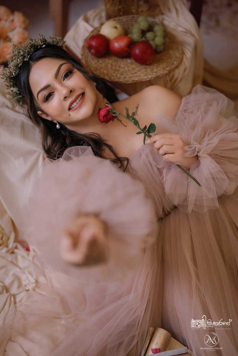 වීදුරු තිර ටෙලිනාට්යයත් එක්ක මේ දවස්වල හුඟක්ම ජනප්රිය ශලනි එයාගේ November Fifty brand එකට පස්සෙ තවත් අලුත්ම brand එකක් launch කළා . Party frock වගේම එක එක විදිහෙ fashion designs එක්ක launch වෙච්ච ඒ brand එකේ නම තමයි මාබල් මියුස්. ඒ ඔක්කොම වැඩ අස්සේ ඊයේ පෙරේදා අලුත්ම චිත්රපටයකත් වැඩ ඉවර කරපු ශලනි ලස්සනම photo shoot එකක් කරලා තිබුණා එයාගේ උපන්දිනයට...උපන්දිනය වෙනුවෙන් එක එක විදිහේ photo shoot කරන එක දැන් ලංකාවේ හුඟක් නළු නිළියන්ගේ fashion එකක් වෙලා....හැබැයි පහුගිය කාලේ කරපු photo shoot වලින් ලස්සනම photo shoot එක කරලා තිබුණේ ශලනි......එක එක්කෙනාට එක එක විදියට හිතෙනවා ඇති...ඒත් පහුගිය කාලෙ කරපු හැම photo shoot එකක් දිහාම බැලුවම අපිට නම් හිතුණෙ ලස්සනම රෝස පාට කුමාරියක් වගේ දිලිසෙන්න ඇඳලා වෙනස්ම photo shoot එක කළේ ශලනි කියලා..