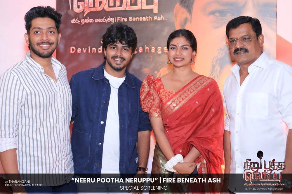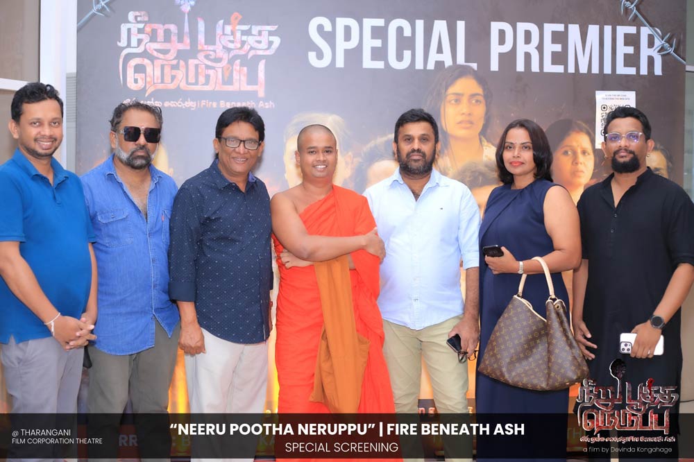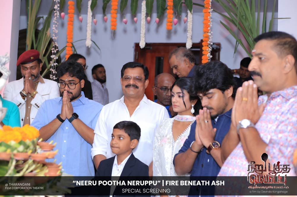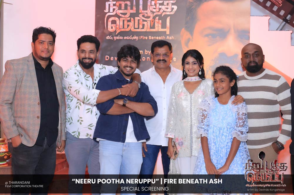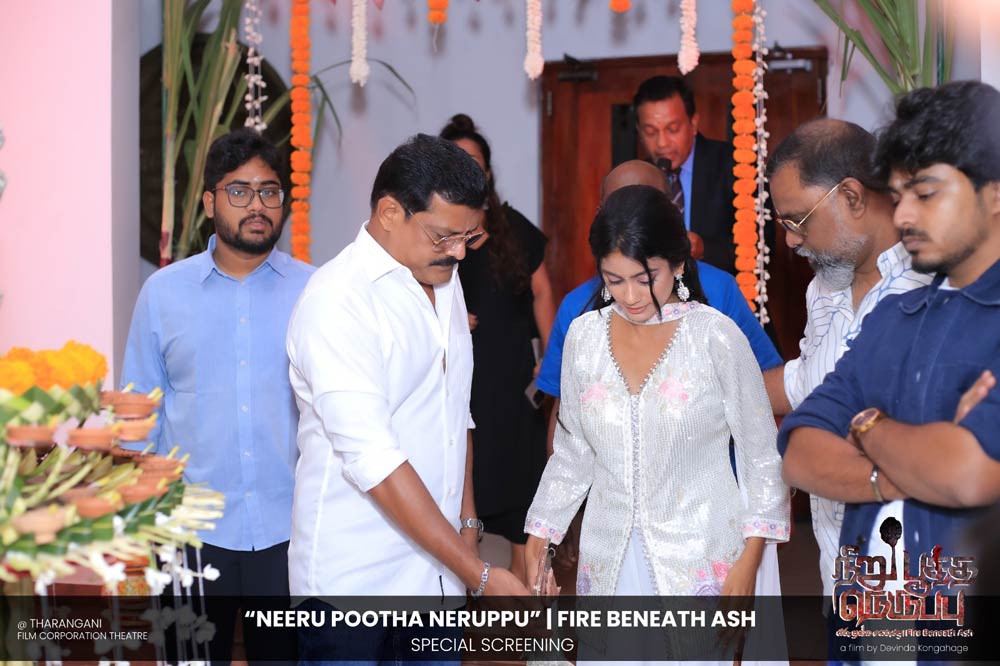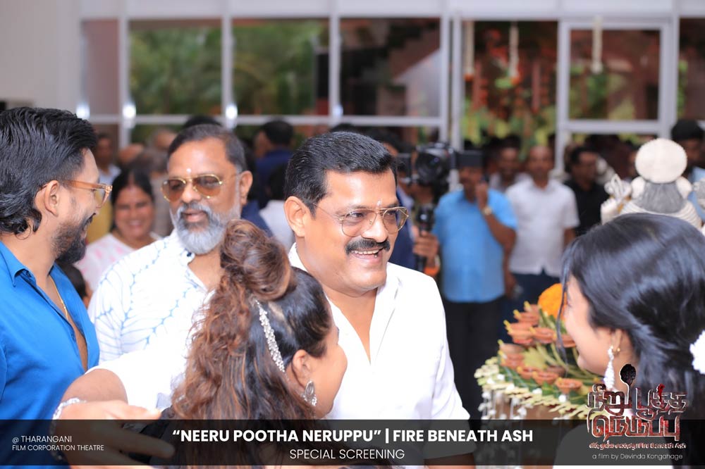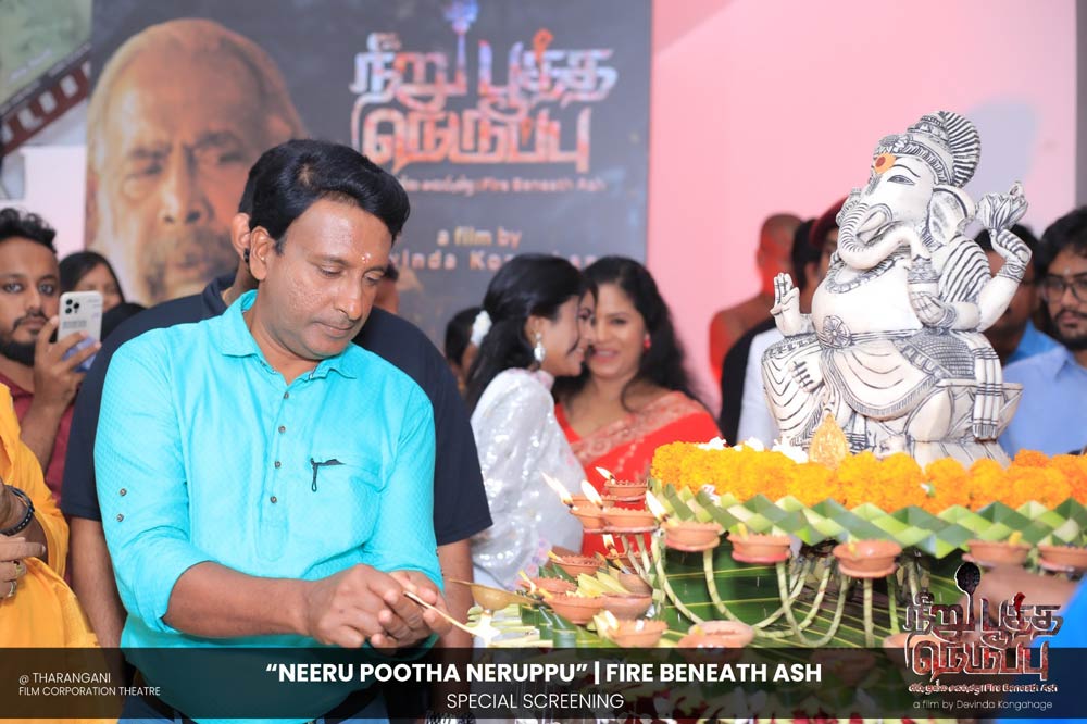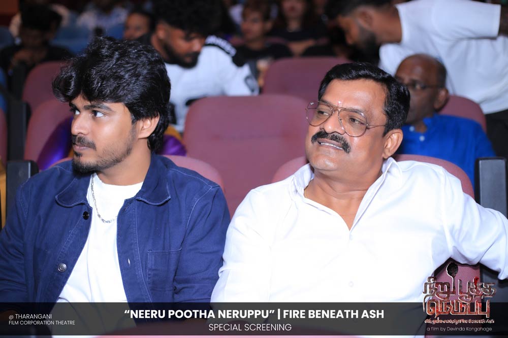 දේවින්ද කෝන්ගහගේ අධ්යක්ෂණය කරන ලද " නීරු පූත්ත නෙරුප්පු " අළු යට ගිනි | Fire Beneath Ash චිත්රපටයේ විශේෂ දැක්මක් පසුගිය දා (2025 ඔක්තෝම්බර් 15) ජාතික චිත්රපට සංස්ථා තරංගනී සිනමාශාලාවේ දී පැවැත්වුණා. මෙම අවස්ථාවට " නීරු පූත්ත නෙරුප්පු " චිත්රපටයේ ප්රධාන චරිතය රඟපාන ඉන්දීය ජනප්රිය රංගන ශිල්පී බෝස් වෙන්කට් සහ සිනමාවට හඳුන්වා දෙන ඔහුගේ පුත් තේජු වෙනක්ට් සහභාගී වුණා. ඊට අමතරව ජ්යේෂ්ඨ සිනමාවේදී ධර්මසිරි බණ්ඩාරනායක, චන්ද්රන් රත්නම් සහ දේශපාලනඥයින්, කලාකරුවන්, මාධ්යවේදීන් සහ හිතවතුන් ඇතුළු පිරිසක් එක්ව සිටියා.