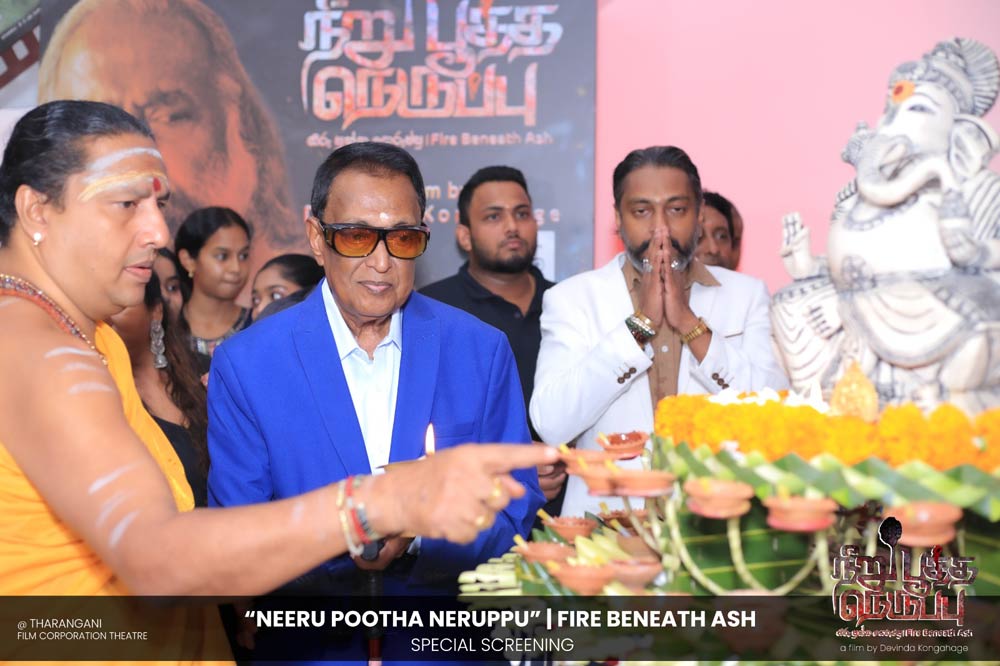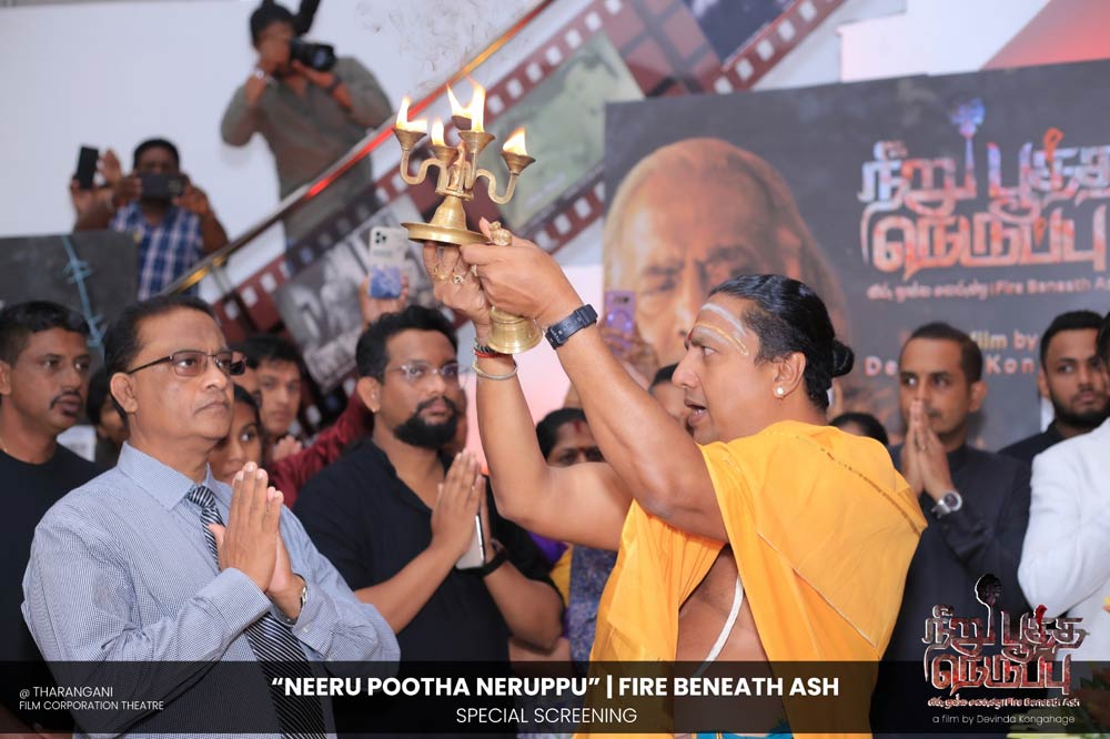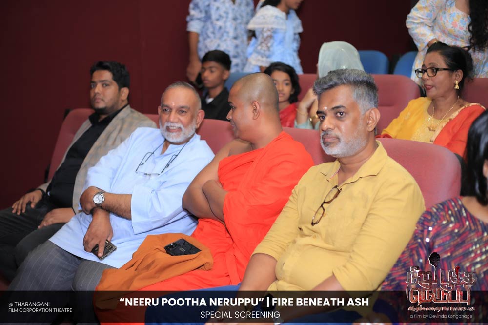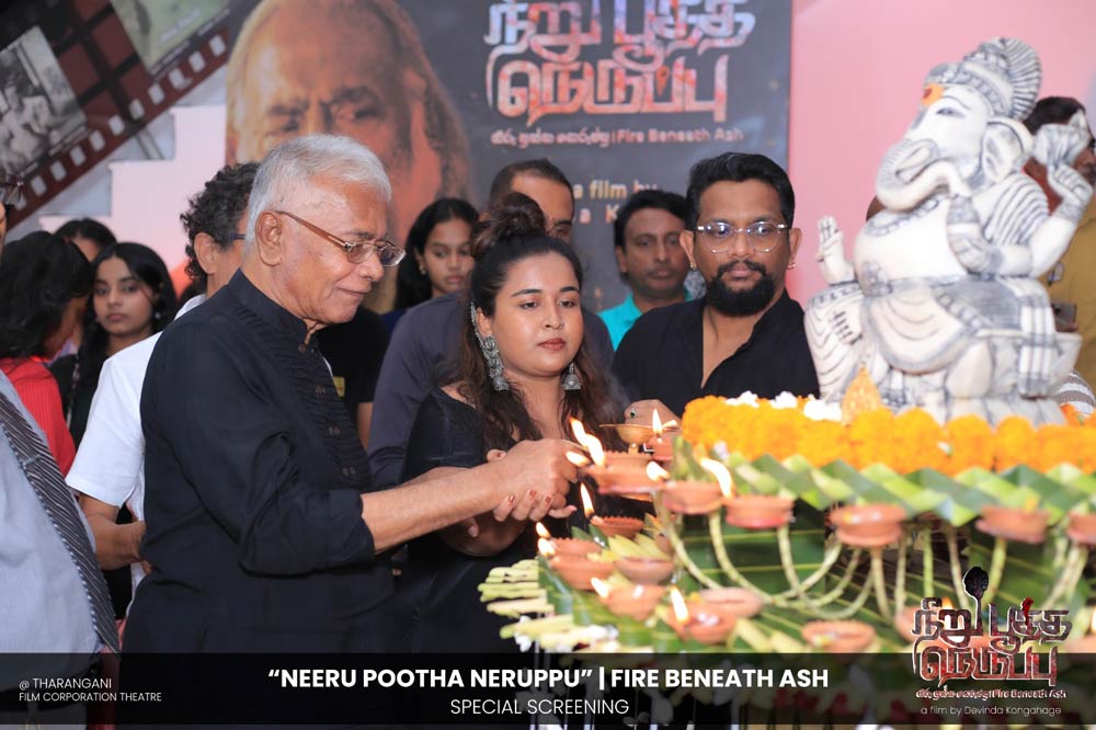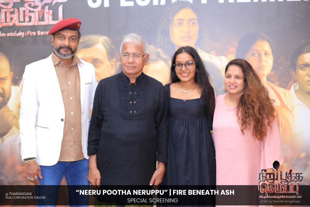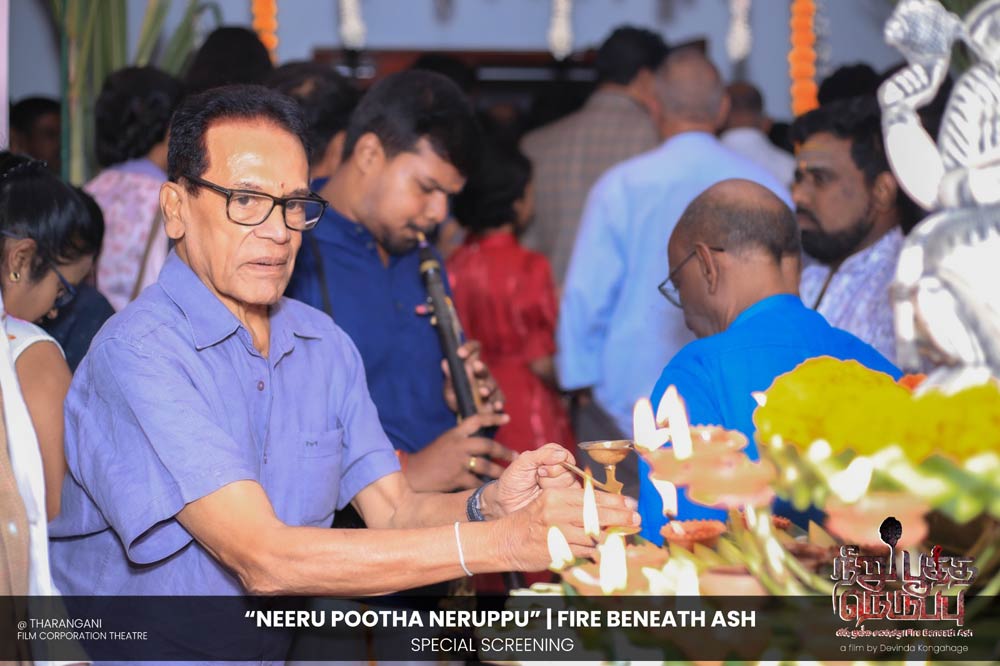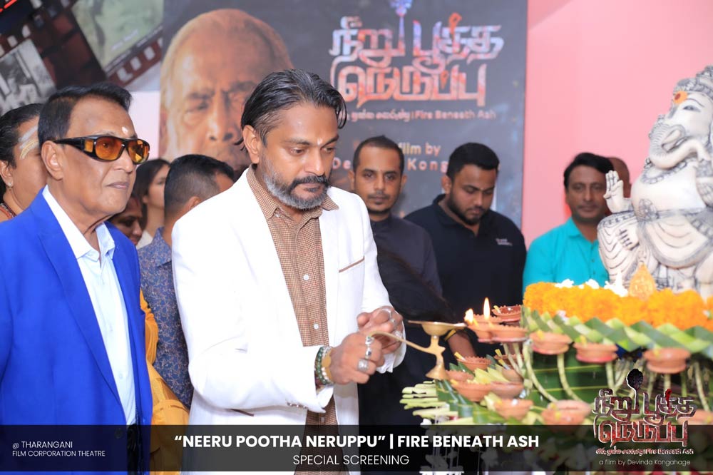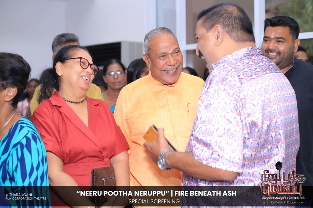 දේවින්ද කෝන්ගහගේ අධ්යක්ෂණය කරන ලද " නීරු පූත්ත නෙරුප්පු " අළු යට ගිනි | Fire Beneath Ash චිත්රපටයේ විශේෂ දැක්මක් පසුගිය දා (2025 ඔක්තෝම්බර් 15) ජාතික චිත්රපට සංස්ථා තරංගනී සිනමාශාලාවේ දී පැවැත්වුණා. මෙම අවස්ථාවට " නීරු පූත්ත නෙරුප්පු " චිත්රපටයේ ප්රධාන චරිතය රඟපාන ඉන්දීය ජනප්රිය රංගන ශිල්පී බෝස් වෙන්කට් සහ සිනමාවට හඳුන්වා දෙන ඔහුගේ පුත් තේජු වෙනක්ට් සහභාගී වුණා. ඊට අමතරව ජ්යේෂ්ඨ සිනමාවේදී ධර්මසිරි බණ්ඩාරනායක, චන්ද්රන් රත්නම් සහ දේශපාලනඥයින්, කලාකරුවන්, මාධ්යවේදීන් සහ හිතවතුන් ඇතුළු පිරිසක් එක්ව සිටියා.