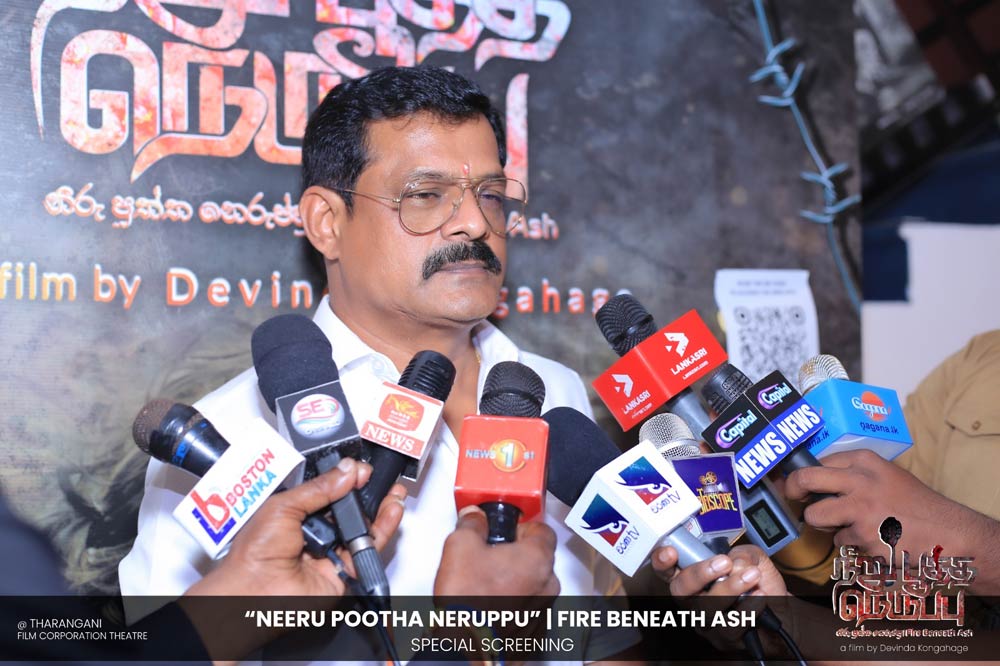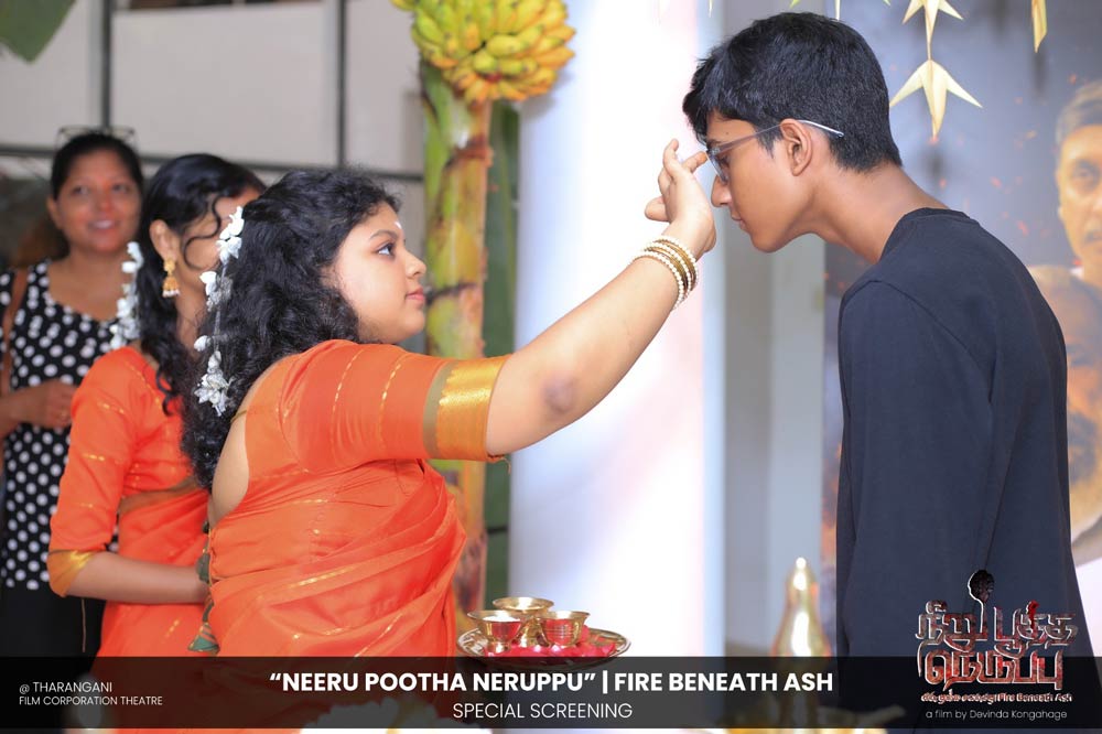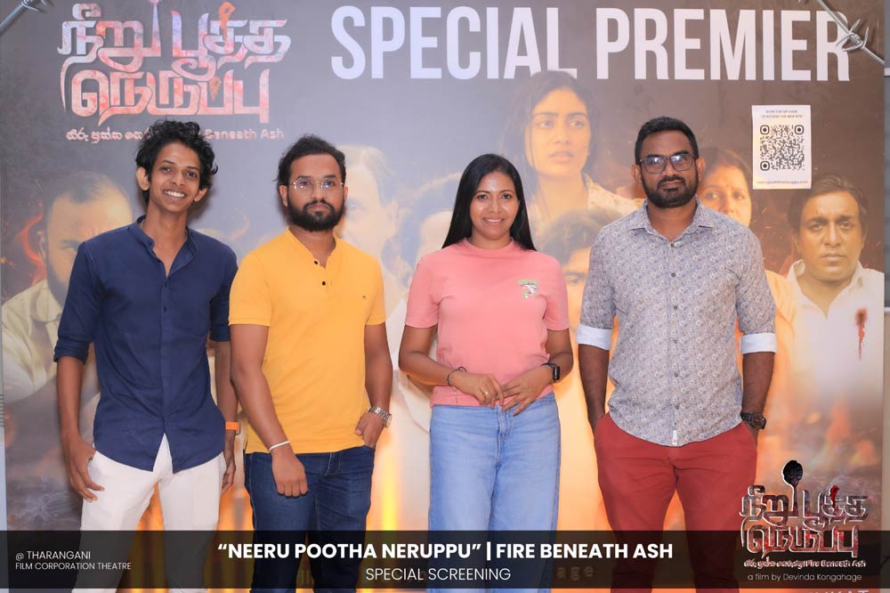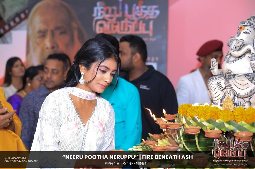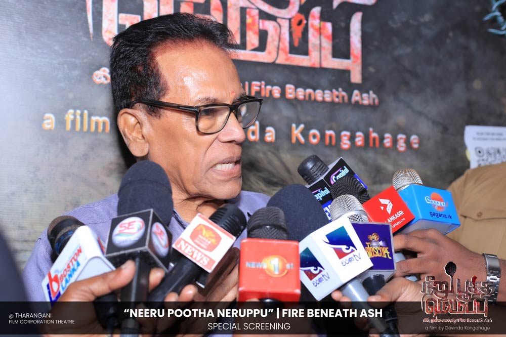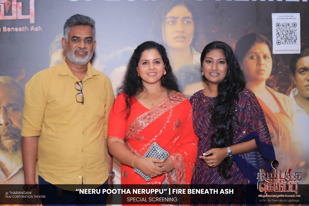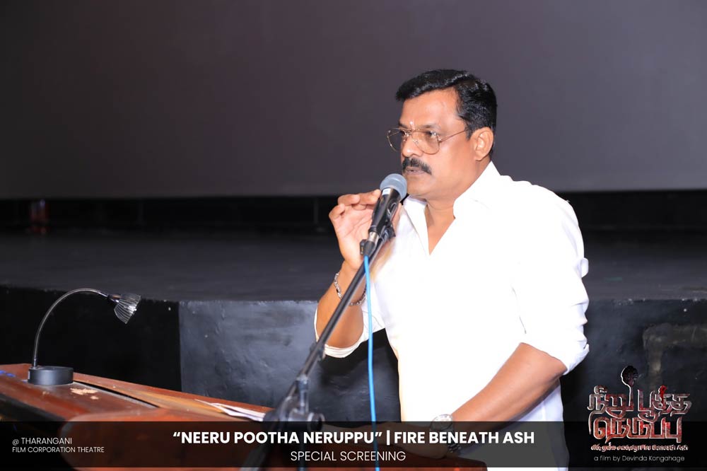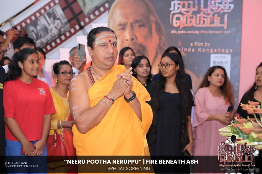 දේවින්ද කෝන්ගහගේ අධ්යක්ෂණය කරන ලද " නීරු පූත්ත නෙරුප්පු " අළු යට ගිනි | Fire Beneath Ash චිත්රපටයේ විශේෂ දැක්මක් පසුගිය දා (2025 ඔක්තෝම්බර් 15) ජාතික චිත්රපට සංස්ථා තරංගනී සිනමාශාලාවේ දී පැවැත්වුණා. මෙම අවස්ථාවට " නීරු පූත්ත නෙරුප්පු " චිත්රපටයේ ප්රධාන චරිතය රඟපාන ඉන්දීය ජනප්රිය රංගන ශිල්පී බෝස් වෙන්කට් සහ සිනමාවට හඳුන්වා දෙන ඔහුගේ පුත් තේජු වෙනක්ට් සහභාගී වුණා. ඊට අමතරව ජ්යේෂ්ඨ සිනමාවේදී ධර්මසිරි බණ්ඩාරනායක, චන්ද්රන් රත්නම් සහ දේශපාලනඥයින්, කලාකරුවන්, මාධ්යවේදීන් සහ හිතවතුන් ඇතුළු පිරිසක් එක්ව සිටියා.