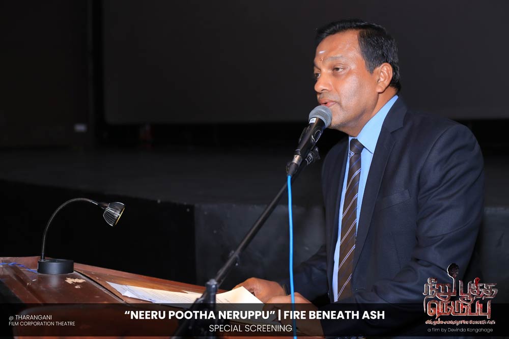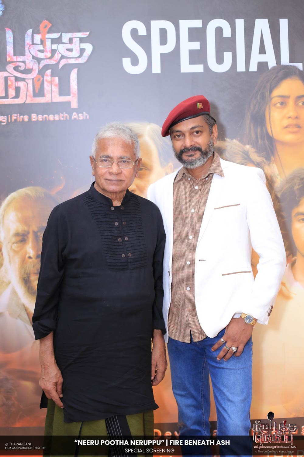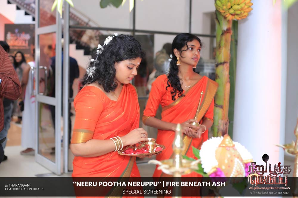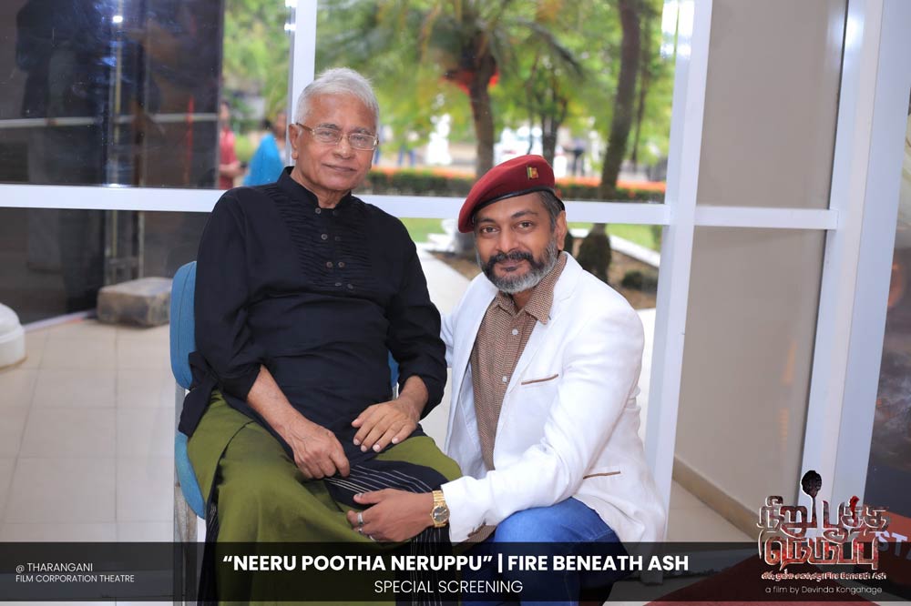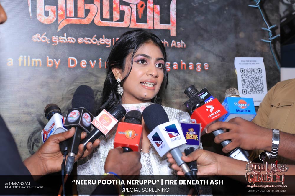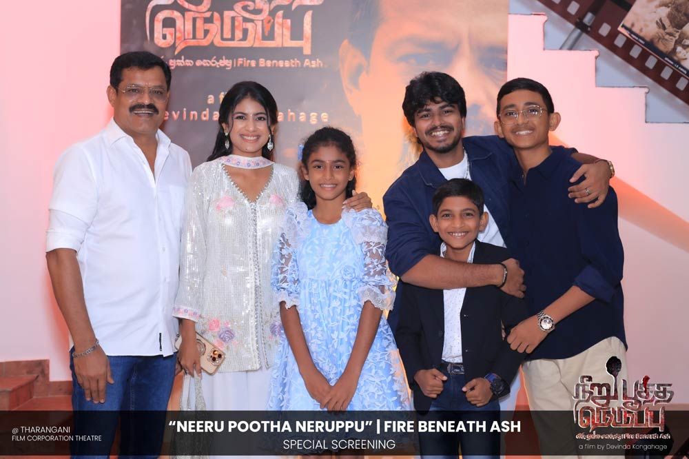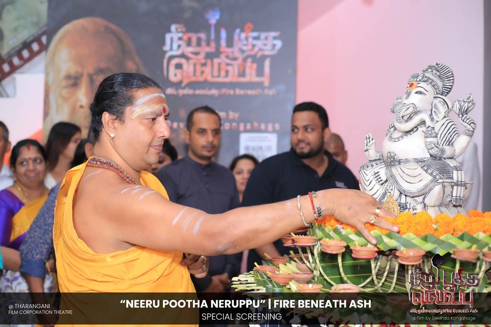 දේවින්ද කෝන්ගහගේ අධ්යක්ෂණය කරන ලද " නීරු පූත්ත නෙරුප්පු " අළු යට ගිනි | Fire Beneath Ash චිත්රපටයේ විශේෂ දැක්මක් පසුගිය දා (2025 ඔක්තෝම්බර් 15) ජාතික චිත්රපට සංස්ථා තරංගනී සිනමාශාලාවේ දී පැවැත්වුණා. මෙම අවස්ථාවට " නීරු පූත්ත නෙරුප්පු " චිත්රපටයේ ප්රධාන චරිතය රඟපාන ඉන්දීය ජනප්රිය රංගන ශිල්පී බෝස් වෙන්කට් සහ සිනමාවට හඳුන්වා දෙන ඔහුගේ පුත් තේජු වෙනක්ට් සහභාගී වුණා. ඊට අමතරව ජ්යේෂ්ඨ සිනමාවේදී ධර්මසිරි බණ්ඩාරනායක, චන්ද්රන් රත්නම් සහ දේශපාලනඥයින්, කලාකරුවන්, මාධ්යවේදීන් සහ හිතවතුන් ඇතුළු පිරිසක් එක්ව සිටියා.