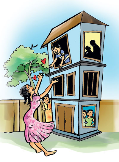 අපේ කාමරේ පස් දෙනෙක් ඉන්නවා. තව දාන්න පුළුවන් නම් ඇන්ටි තවත් ළමයි දානවා. කාමරේ ඔක්කොමලා එකට එකතු වුණාම හුස්ම ගන්නවත් බැහැ. මුළු ගෙදරම ඉන්නේ බෝඩිම් ළමයි. මේ ගෙදර තට්ටු 3ක්. උඩම තට්ටුවේ ඉන්නෙ පිරිමි ළමයි. ඒත් ඇන්ටි අලුතෙන් එන ළමයින්ට උඩ තට්ටුවේ පිරිමි ළමයි ඉන්නවා කියලා කියන්නේ නැහැ. පිරිමි ළමයි ඉන්න තැන්වල ගෑණු ළමයින් නතර වෙන්න කැමති නෑනේ. ඒත් ඒ උඩ නතර වෙලා ඉන්න පිරිමි ළමයි ගොඩක් අය පහළ තට්ටුවේ ඉන්න ගෑණු ළමයින්ගේ බෝයි ෆ්රෙන්ඞ්ස්ලා. ඒ කියන්නේ ඇන්ටි බෝඩිමට ගන්නේ කපල් එකම. පිරිමි ළමයට උඩ තට්ටුව දෙනවා. පහළ තට්ටුවේ කාමරයක් ගෑණු ළමයට දෙනවා. අපි ඉන්නේ පහළම තට්ටුවේ. දෙවැනි තට්ටුවේ ගොඩක් ඉන්නේ කොල්ලත් එක්කම මේ බෝඩිමට ආපු අය. බෝඩිමට එද්දි නම් මේ වගේ දෙයක් සිද්ධ වෙනවා කියලා දැනන් හිටියේ නැහැ. ඒත් රු. 3,000 වගේ මේ පළාතේ වෙන බෝඩිම් නැහැ. ඇති, ඒත් මේ තැන ඉඳන් රැකියාවට යන්න පහසුයි. ඒත් මේ වගේ දේවල් සිද්ධ වෙනවා කිව්වම ආපු දවස්වල නම් ගොඩක් බය හිතුණා. අපේ කාමරේ ඉන්න කිහිප දෙනකුටම බෝයි ෆ්රෙන්ඞ්ස්ලා ඉන්නවා. ඇන්ටි නිතරම අහනවා. ඇන්ටි අහන්නේ අපට ආදරේට නොවෙයි. බෝඩිංවල ගණන් ඇහුවම කලන්තේ දානවා.