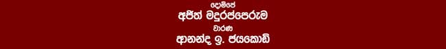 ‘‘හොඳයි උඹ කොකා ගස්සපන්, මම මේ ඇඟිල්ල මුනිස්සම එළියට එන්න කලිං අහකට ගන්නවා’’ මම්මලේ අභියෝගයට පිළිතුරු දුන්නේය.