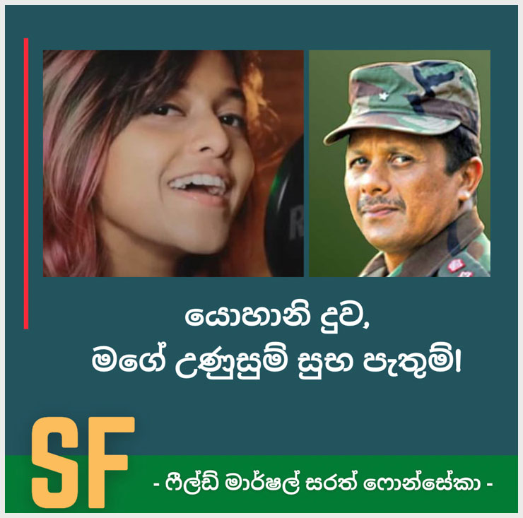 මේ අතර, යොහානි ගැන, පාර්ලිමේන්තු මන්ත්රී, ෆීල්ඩ් මාර්ෂල් සරත් ෆොන්සේකා අපූරූ සටහනක් සිය මුහුණු පොතට එකතු කර තිබුණා.