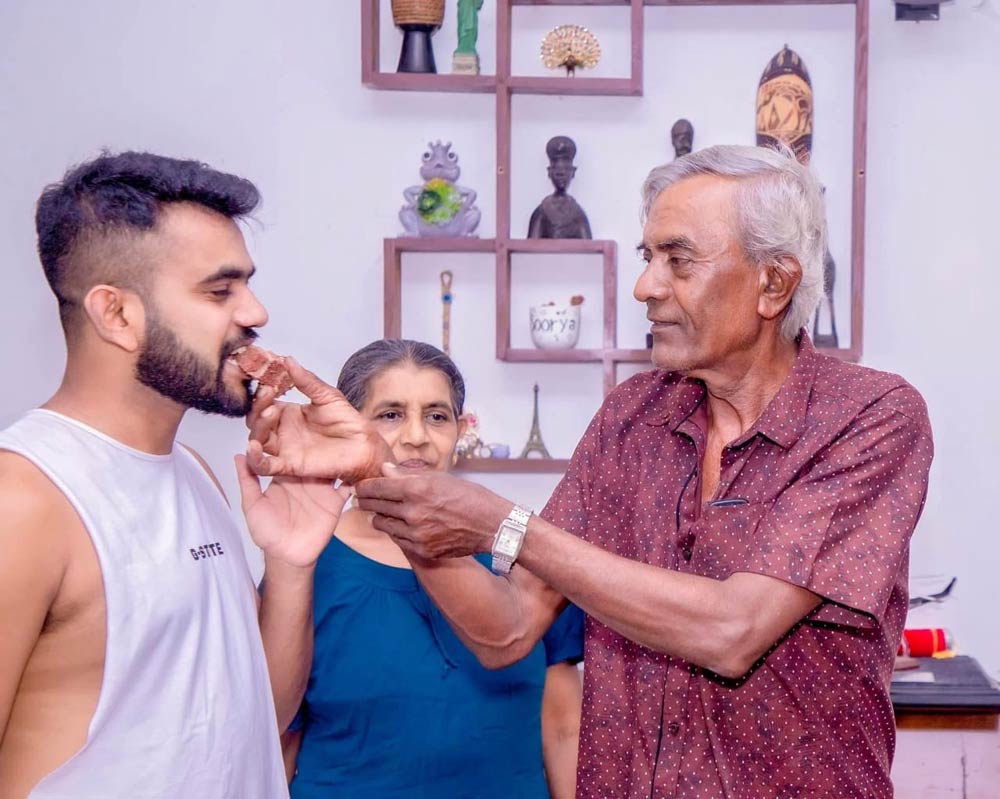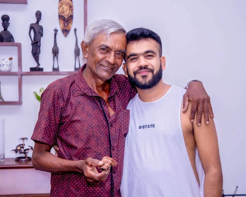 "වෙදකමට සහ ගොවිකමට අමතරව මගේ තාත්තා හේවිසි ගැහුවා.හේවිසි ගහද්දි බිම එලන රෙද්දට වැටෙන කාසි වලින් තමයි තාත්තා  ඒ කාලේ අපි  හය දෙනෙක්ගෙ බඩගින්න නිව්වේ .මොකද වැහි  කාලෙට සමහරවිට කුඹුරු අස්වනු පාඩු වෙලා යන අවස්ථා තියෙනවා.තාත්තා වෙදකම කළේ පිනට මිසක් සල්ලි උපයන්න නෙවෙයි. පත්තරේක මගේ පළවෙනි ආටිකල් එක ගිය දවසේ තාත්තා පත්තරේ අරගෙන ගම වටේටම ගිහිල්ලා මිනිස්සුන්ට පෙන්නලා මේ මගේ පුතා පත්තරේ ඉන්නවා කියලා.   මගේ ගම පොළොන්නරුවේ ඈත දුෂ්කර ගම්මානයක් අදටත් ඒ ගමට හරියට ෆෝන් සිග්නල් නෑ .මම ඉගෙන ගන්න වැඩවලටයි කලා කටයුතුවලටයි දාසය පාරක් විතර පිටරටවල්වල ගිහින් තියෙනවා. මම ඉගෙන ගත්තෙ සෞන්දර්ය විශ්ව විද්‍යාලයේ.එකපාරක් මම සිට්සර්ලන්තයට ගිහින් අම්මට හිම  පෙන්නන්න ඕන හින්දා වීඩියෝ කෝල් එකක් ගත්තා.සිග්නල් නැති හින්දා අම්මා ෆෝන් එකත් අරගෙන පාරට ඇවිත් කතා කරේ.බලද්දි අම්මගෙ පිටිපස්සෙන් ගමේ මිනිස්සු බාගයක්  විතර ඉන්නවා මාව බලන්න ඇවිත්.අනේ පුතේ අපි කවදාවත් හිම දැකලා නෑනේ පුතා තමයි අපේ ගමෙන් ඔහොම පිටරටකට ගියේ කියලා ඒ මගේ ගමේ නැන්දල මාමලා මට බුදු සරණයි පුතේ කිය  කියා ආශිර්වාද කළා.අදටත් මම ගමේ ගියහම ඒ අය මාව බලන්න එනවා. එහෙම ගමක ඉපදිච්ච මම අද මේ වගේ තැනක ඉන්න එක මට දැනෙන්නෙ ලොකු දෙයක් මම දිනා ගත්ත වගේ හැඟීමක්. ඒ ආදරය හිතවත්කම් හරිම අව්‍යාජයි.මෝඩ තරිඳුටත් පුදුම ප්‍රතිචාරයක් මේ දවස්වල මට ලැබෙන්නේ.ආදරෙයි ඔක්කොටම කියලා තමයි කියන්න තියෙන්නේ."